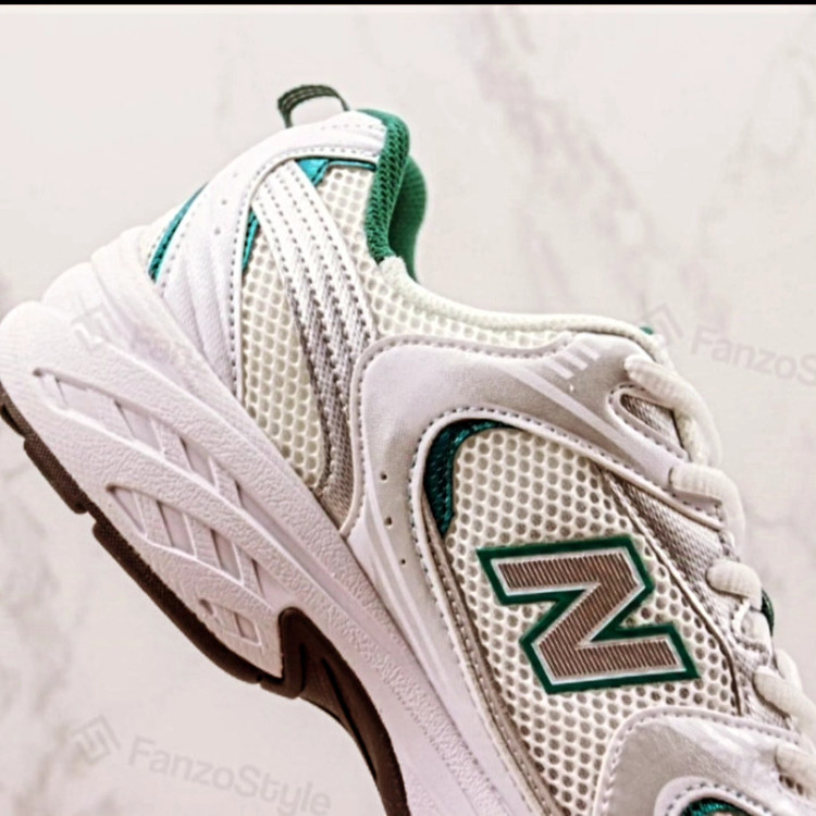 از جمله مشخصات ظاهرى در کتانىNew Balance 530 Night Watch Green مش سفید کار شده به عنوان پایه رویه کتانی است که در لهجه های چرمی سفید در قسمت پاشنه و قسمت اصلی وجود دارد و چرم نقرهای روی قسمت جلویى کفش که قسمتهاى تورى را میپوشاند به چشم میخورد که در کنار علامت “N” سبز و خطوط سبز در قسمت پاشنه و جلویى کفش هارمونى بسیار زیبایى را تشکیل میدهند.